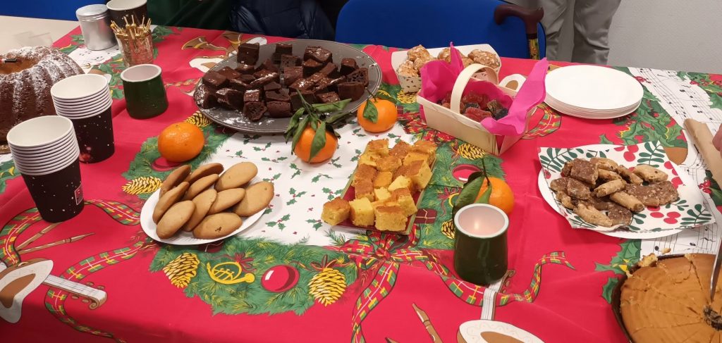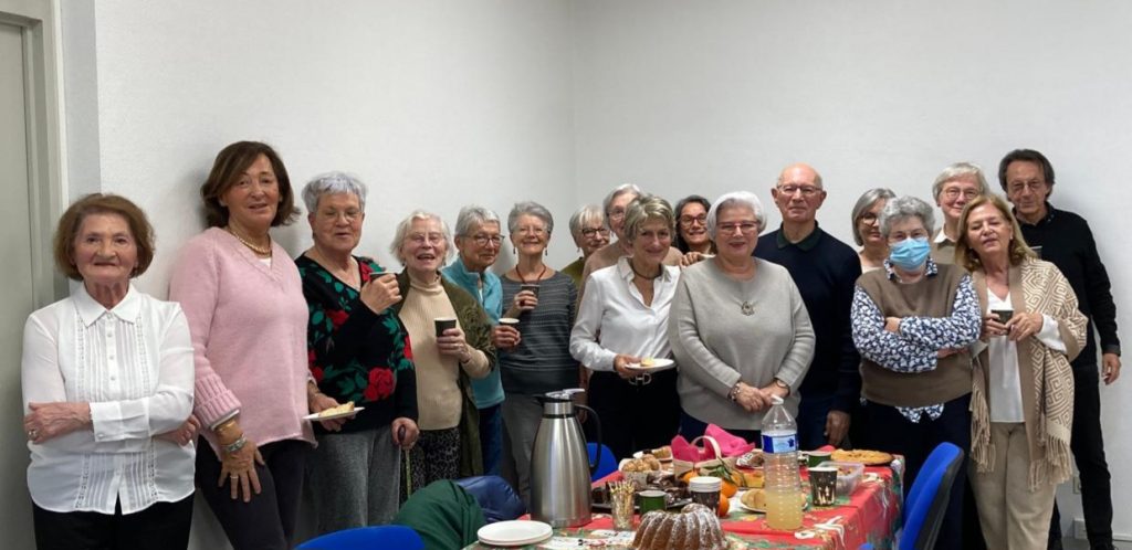 Louis, Sylvie sont là pour accueillir et animer notre réunion, avant-dernière de l’année. Nous accueillons aussi de gros sacs portés par de nombreux bras de cuisinières et de gourmands. De belles choses nous attendent vers 16 heures.