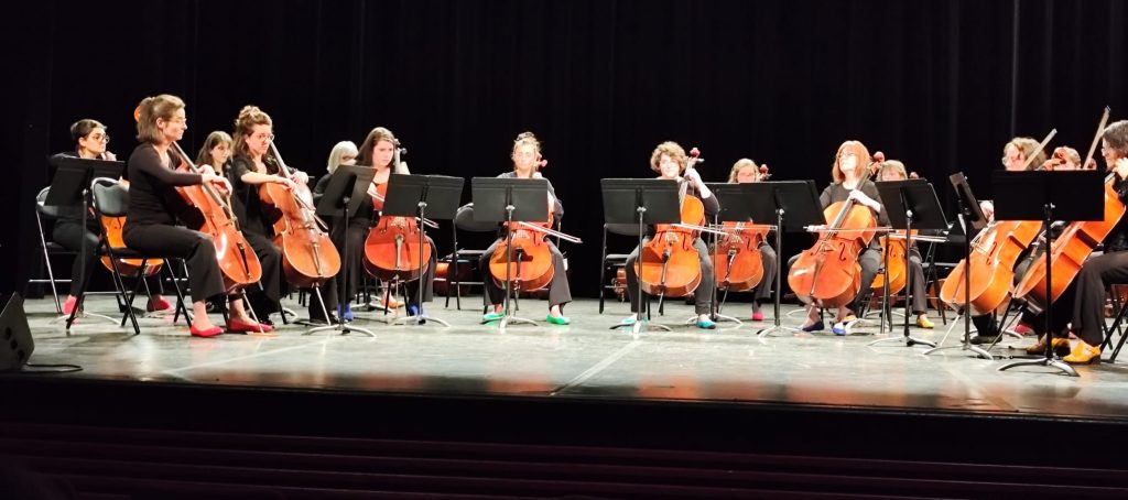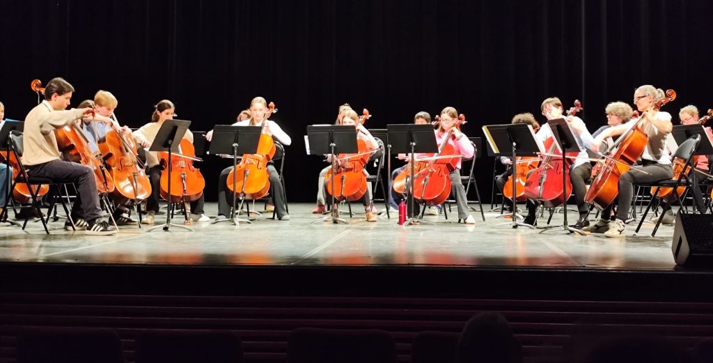 Avant le concert des Pique du Rivet, concert de l’école de Bruges des plus jeunes et des ados. Que des violoncelles.
