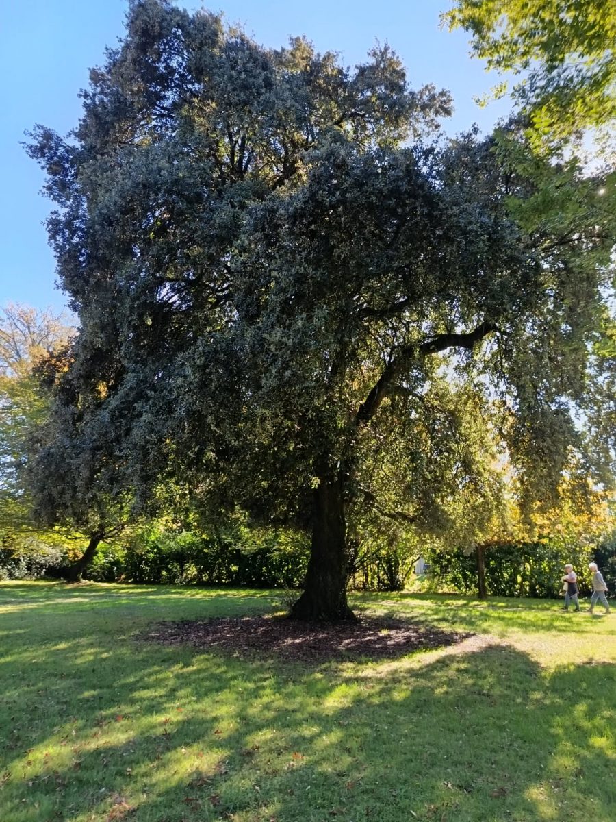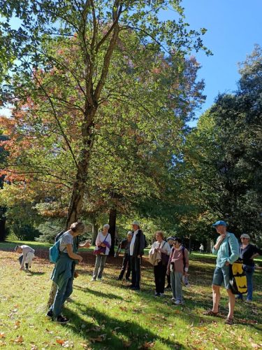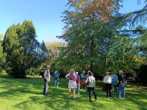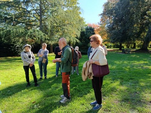 Jean nous a fait découvrir dans ce parc deux espèces d’arbres assez rares: le Sophora, originaire d’Asie, représenté par un vieux et gros arbre qui héberge sur plusieurs de ses énormes branches des fougères et le Zelkova du Caucase représenté par un couple de grands arbres. La clémence du temps a fait grossir notre groupe au delà des inscrits.